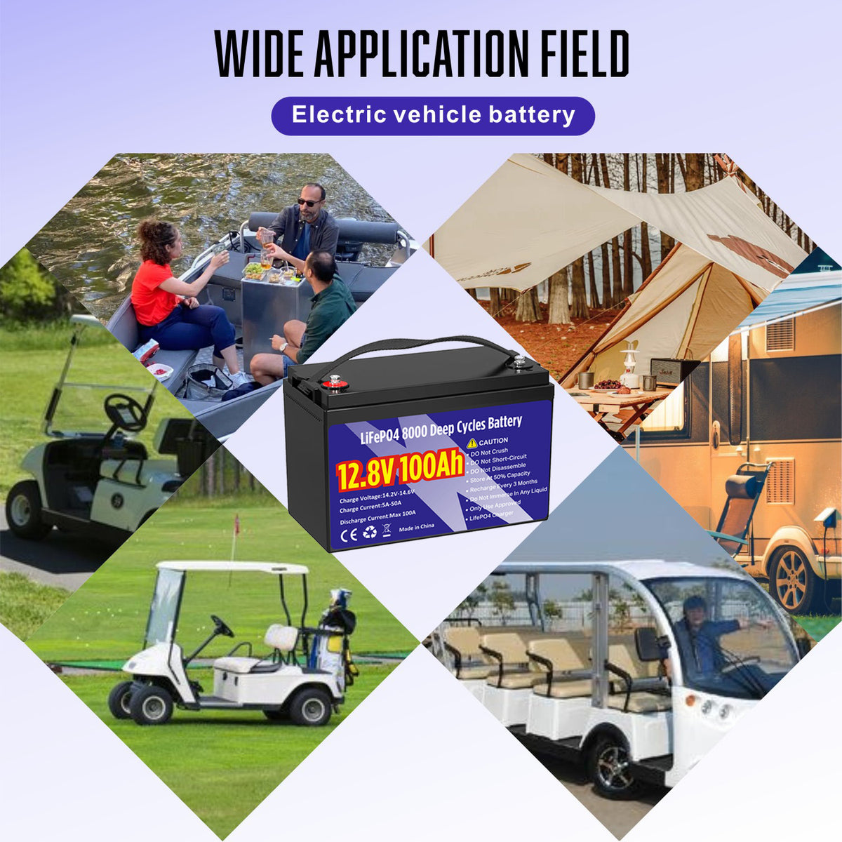 - 【Capacity Expansion & Widely Use】12.8V 100Ah Lifepo4 Batteries support series or parallel connecting. Powerful energy expansion system could be widely used for home storage system (avoiding the effects of power outages), RVs, backup power, off-grid system, Trolling Motor, Boat, Marine, trailer, automotive replacement Batteries, and outdoor activities. Much more flexible to DIY your own battery system.